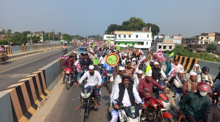 মোটরসাইকেল শোভাযাত্রার মাধ্যমে নেতৃবৃন্দ জনগণের মাঝে দলের প্রতীক হাতপাখা পরিচিতি ও পরিবর্তনের বার্তা তুলে ধরেন।