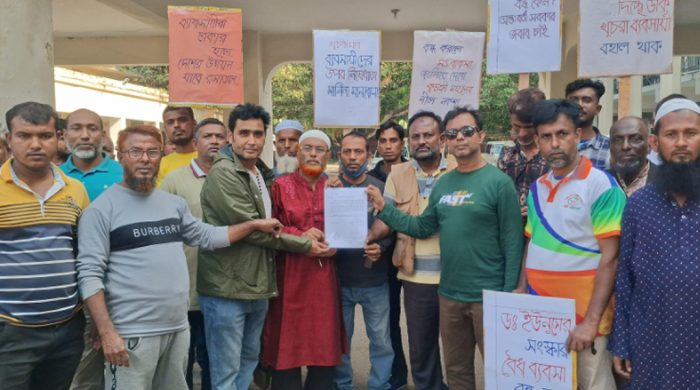 মানববন্ধন কর্মসূচিতে সভাপতিত্ব করেন সংগঠনটির উপজেলা সভাপতি জিহাদ আলী মল্লিক। বক্তব্য রাখেন সহ-সভাপতি কামরুজ্জামান, সাধারণ সম্পাদক বিশ্বজিত চক্রবর্তী, কোষাধ্যক্ষ কবির সরদার, সদস্য মোল্লা মামুন প্রমুখ।