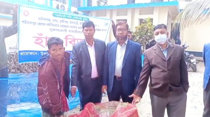 ফরিদপুর সদর উপজেলা প্রাণিসম্পদ দপ্তর এর আয়োজনে ফরিদপুর, মানিকগঞ্জ, ঢাকা,মুন্সীগঞ্জ, রাজবাড়ী, মাদারীপুর ও শরীয়তপুর জেলার নদী বেষ্টিত চরাঞ্চলে সমন্বিত প্রাণিসম্পদ উন্নয়ন প্রকল্পের আওতায় সুফলভোগী খামারিদের মাঝে হাস, খাদ্য সহ প্রয়োজনীয় উপকরণ বিতরণ করা হয়েছে।