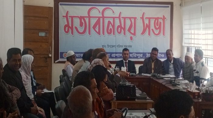 ঠাকুরগাঁওয়ের হরিপুরে স্থানীয় জনপ্রতিনিধি, রাজনৈতিক নেতৃবৃন্দ,গণমাধ্যম প্রতিনিধি,সুশীল সমাজের প্রতিনিধি, শিক্ষা প্রতিষ্ঠানের প্রধান,বিজিপি, এন জিও প্রধান ও ইউপি চেয়ারম্যানগনের সাথে ইউএনও’র মতবিনিময় সভা হয়েছে।