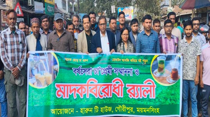 ময়মনসিংহে জেলার গৌরীপুরে বুধবার (১৭ ডিসেম্বর) দেশের আলোচিত চা দোকানদার হারুন মিয়ার ব্যতিক্রমী আয়োজনে এবারও অনুষ্ঠিত হয় বর্ষসেরা চা’প্রেমী সম্মাননা। ‘মাদক ছেড়ে চা ধরুন, মোবাইল আসক্তি কমিয়ে বই পড়ুন’ স্লোগানকে প্রতিপাদ্য করে একটি শোভাযাত্রা শহরের প্রধান সড়ক প্রদক্ষিণ শেষে ২৫ সনে ২৫ জন চা প্রেমিককে সম্মাননা প্রদান করা হয়।