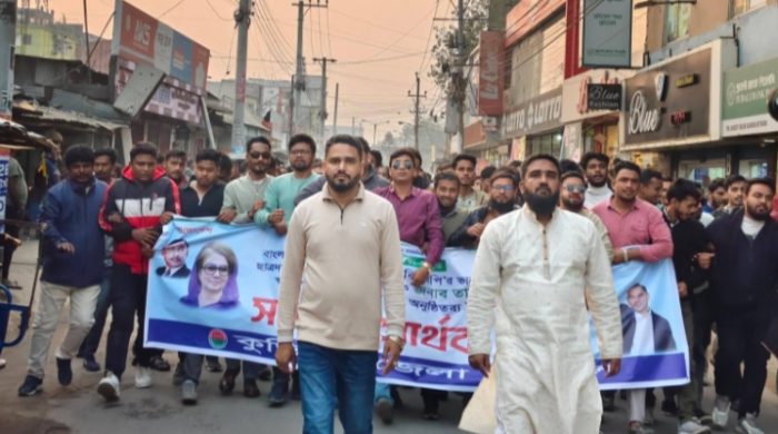 সোমবার (২২ ডিসেম্বর) বিকেলে বাংলাদেশ জাতীয়তাবাদী জেলা কার্যালয় থেকে মিছিলটি বের হয়ে গুরুত্বপূর্ণ এলাকা প্রদক্ষিণ করে।