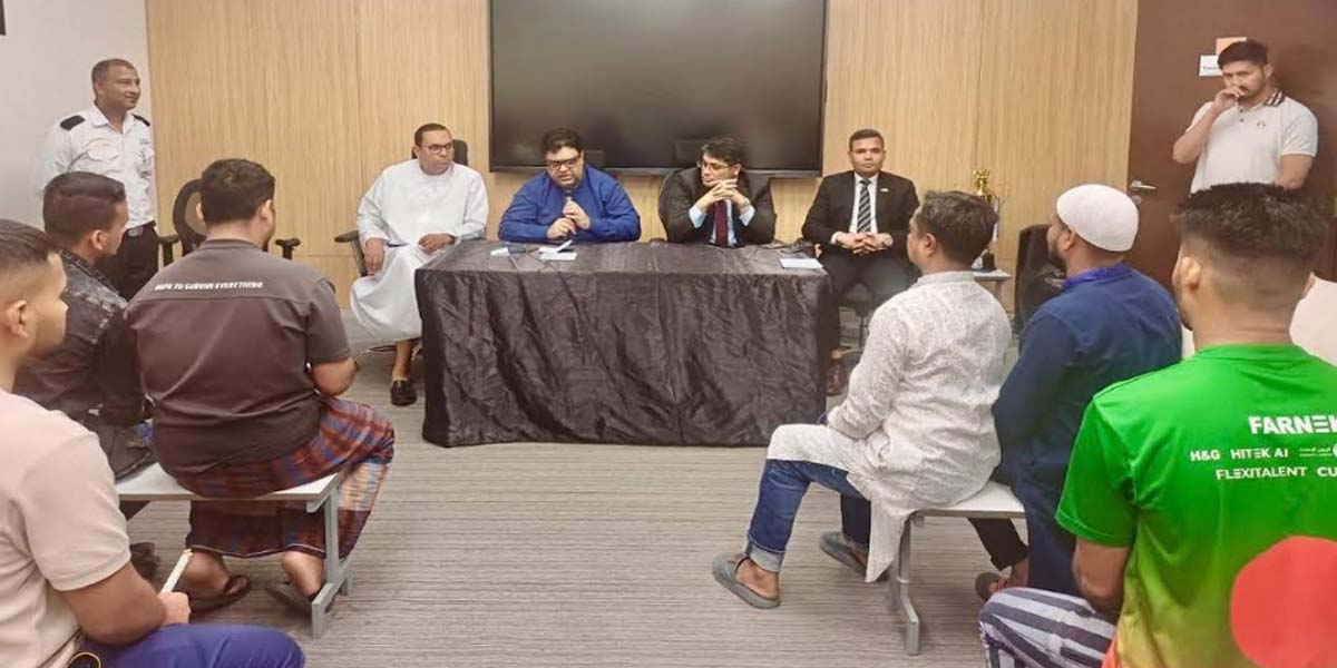 প্রধানমন্ত্রীর উপদেষ্টা জনাব রেহান আসাদ দুবাইয়ের জাবাল আলী শিল্প এলাকায় অবস্থিত ফারনেক ভিলেজ লেবার ক্যাম্প পরিদর্শন