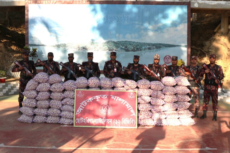 রাঙামাটিতে বিজিবির অভিযানে ভারতে পাচারের সময় বিপুল রসুন জব্দ